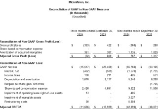 To supplement MicroVision's condensed financial statements presented in accordance with GAAP, the Company presents investors with the non-GAAP financial measures "adjusted EBITDA" and "adjusted Gross Profit." Adjusted EBITDA consists of GAAP net income (loss) excluding the impact of the following: interest income and interest expense; income tax expense; depreciation and amortization; bargain purchase gain; share-based compensation; impairment charges; and restructuring costs. Adjusted Gross Profit is calculated as GAAP gross profit before share-based compensation expense and the amortization of acquired intangibles included in cost of revenue.