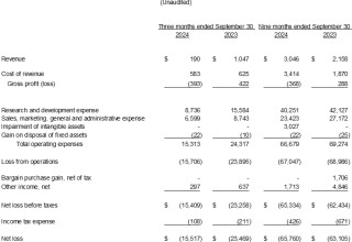 Adjusted EBITDA for the third quarter of 2024 was an $11.7 million loss, compared to a $16.9 million loss for the third quarter of 2023.