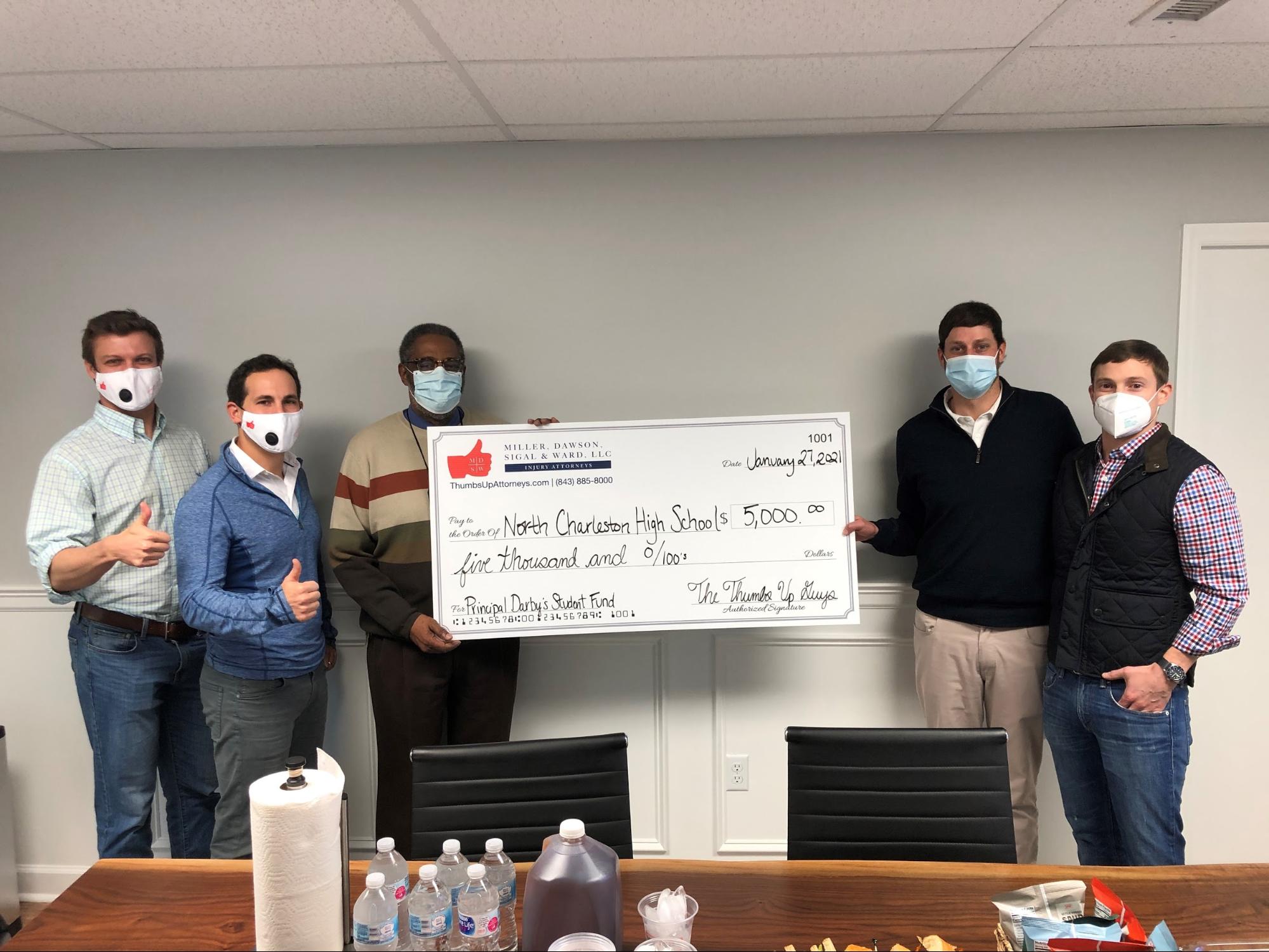 CHARLESTON, S.C., February 2, 2021 (Newswire.com) - Local personal injury law firm, Miller, Dawson, Sigal & Ward Injury Attorneys, also known as the "Thumbs Up Guys", has fulfilled a pledge to donate a total of $5,000 to further North Charleston High School's principal's cause (most recently featured on The Today Show) of helping low-income students and their families.