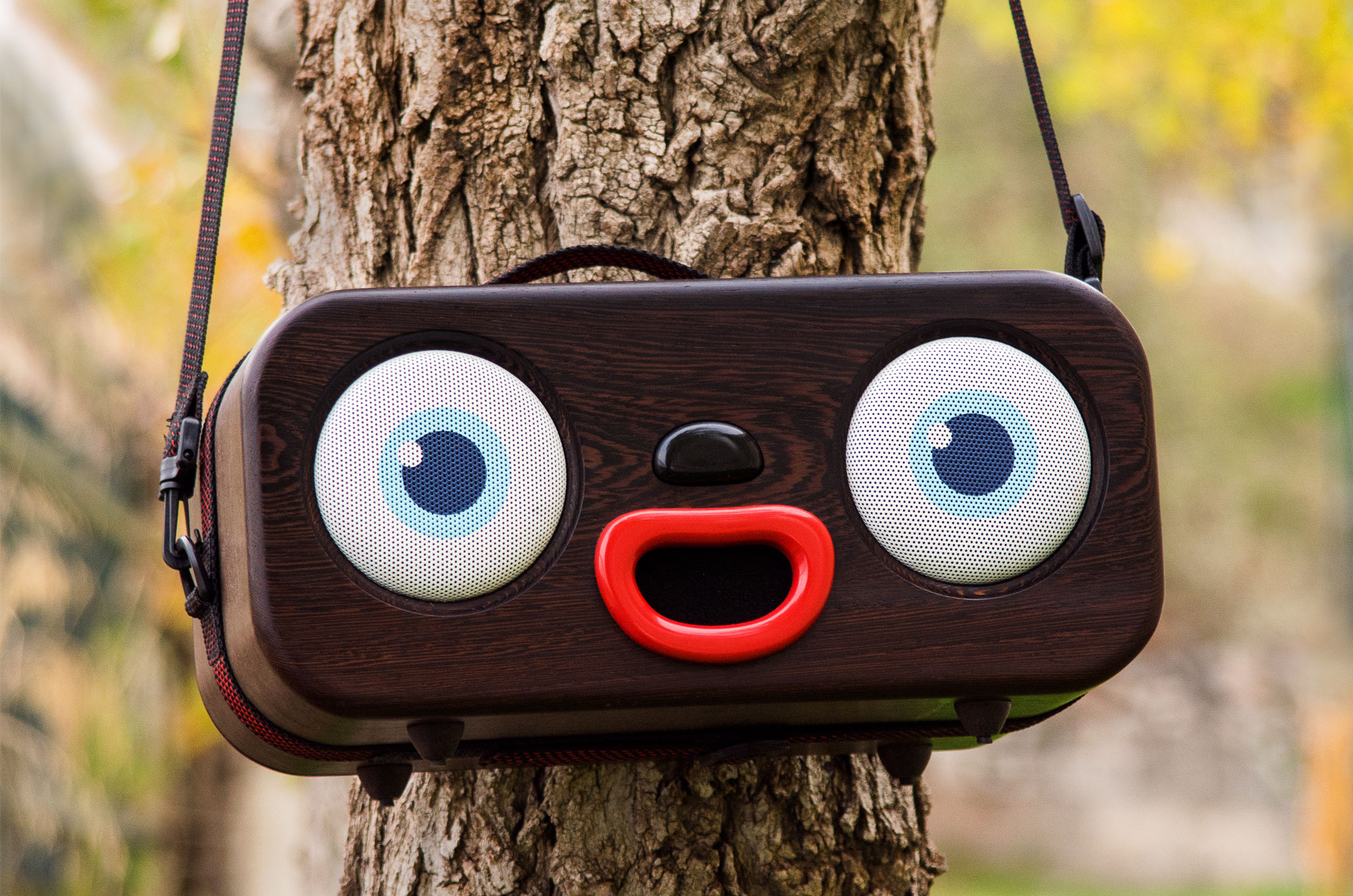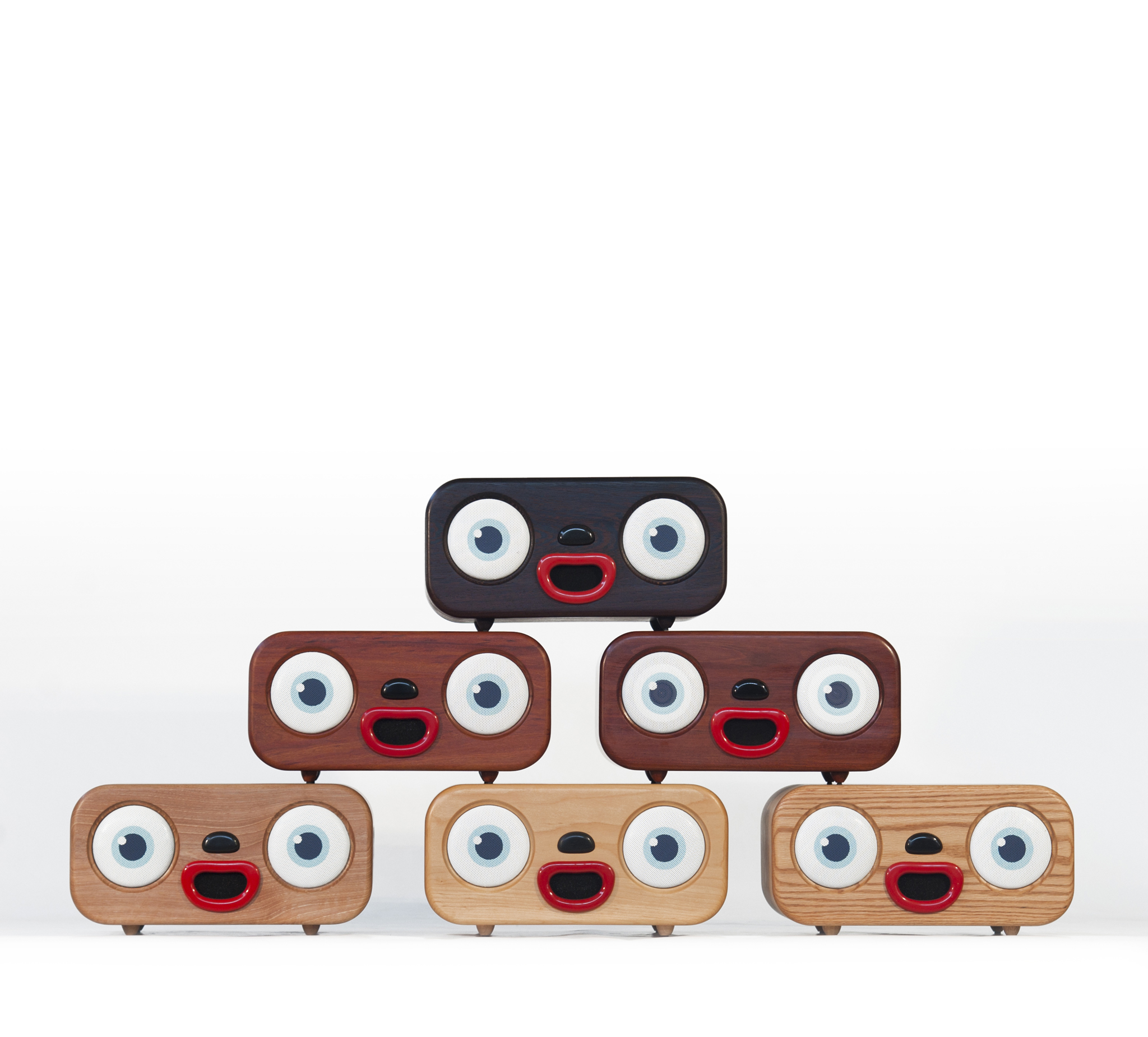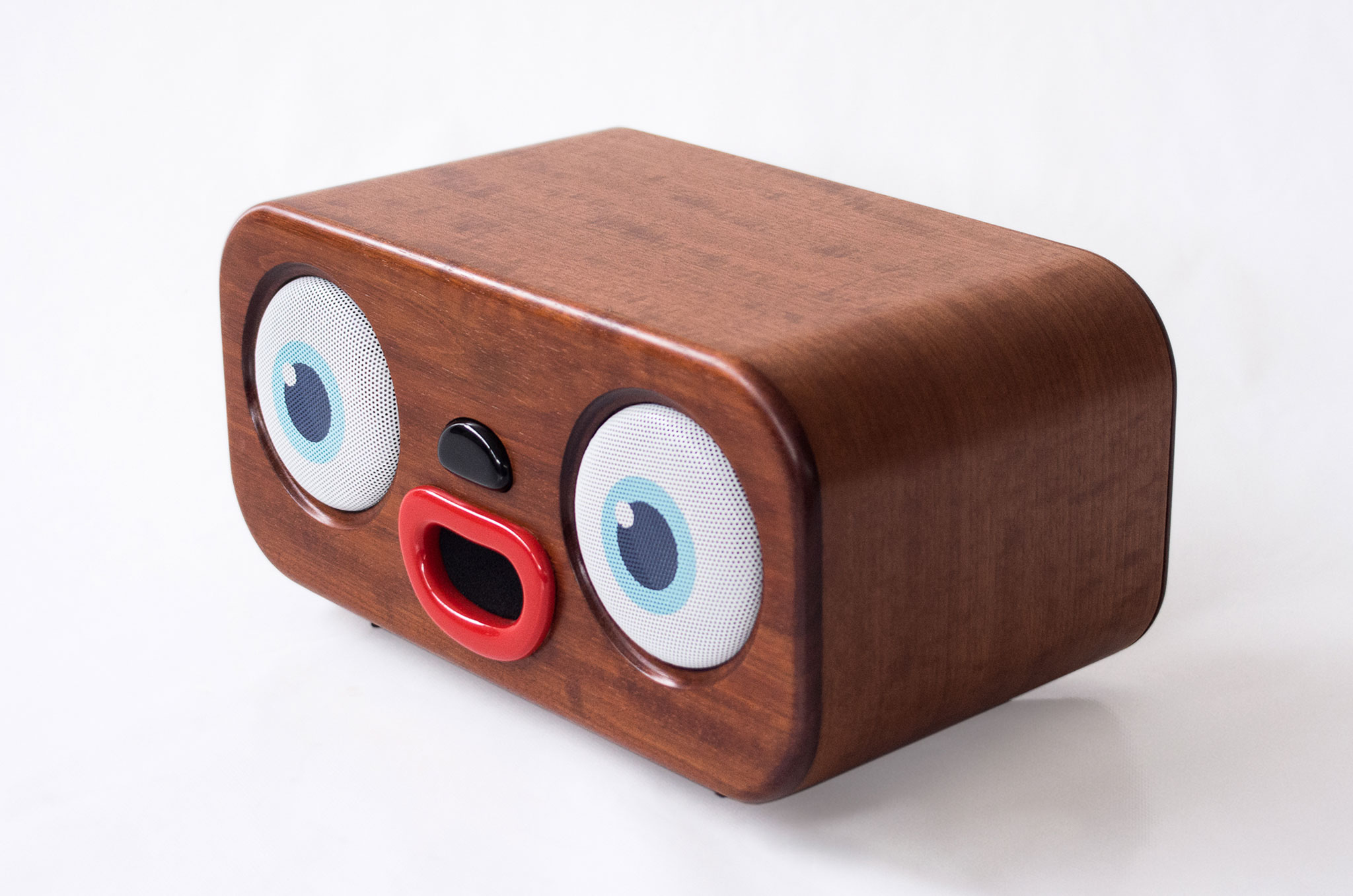 The small size of MiniMe, as well as the fact that it has an 8 hour battery life, makes it highly portable and convenient to take everywhere. However, while it may be small and lightweight, MiniMe proves the saying “great things come in small packages” to be very accurate. As the creators state, “It may seem small but the sound it produces is powerful. It is like having two full-range HiFi speakers in one! What you'll get, modestly speaking, is even better than what you see!” MiniMe has a Bluetooth function that enables users to stream directly from their smart device, as well as Wi-Fi capability which can be used to stream movies, music, games, etc. directly from the television. The MiniMe boom box comes in 6 different wood types and colors: mahogany, maple, oak, walnut, wenge, and rosewood. The face of MiniMe is also highly customizable. A user can select the eye graphics, led lights, custom volume knobs and more in order to fully personalize their very own MiniMe.