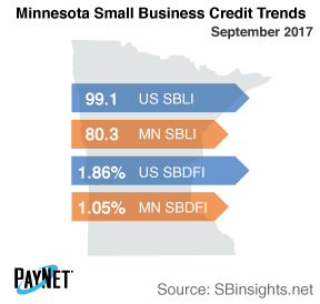 Saint Paul, MN, November 21, 2017 (Newswire.com) - Data published by PayNet indicate that a smaller number of small businesses defaulted on loans in Minnesota and the level of borrowing activity worsened in September 2017.