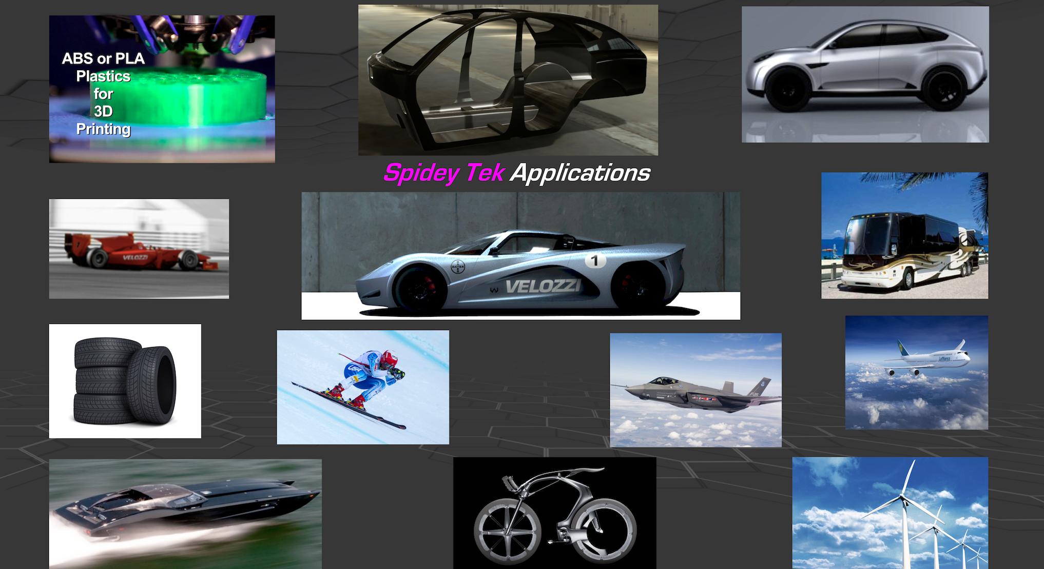 Our spider silk meets the mechanical requirements to produce “Load Bearing Products.” Spidey Tek’s Real Spider Silk is stronger, lighter and less expensive than carbon fiber, steel or aluminum when mass produced. This will make a dramatic difference in the way everything is manufactured today, from glues to automobiles and airplanes.