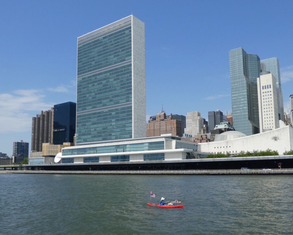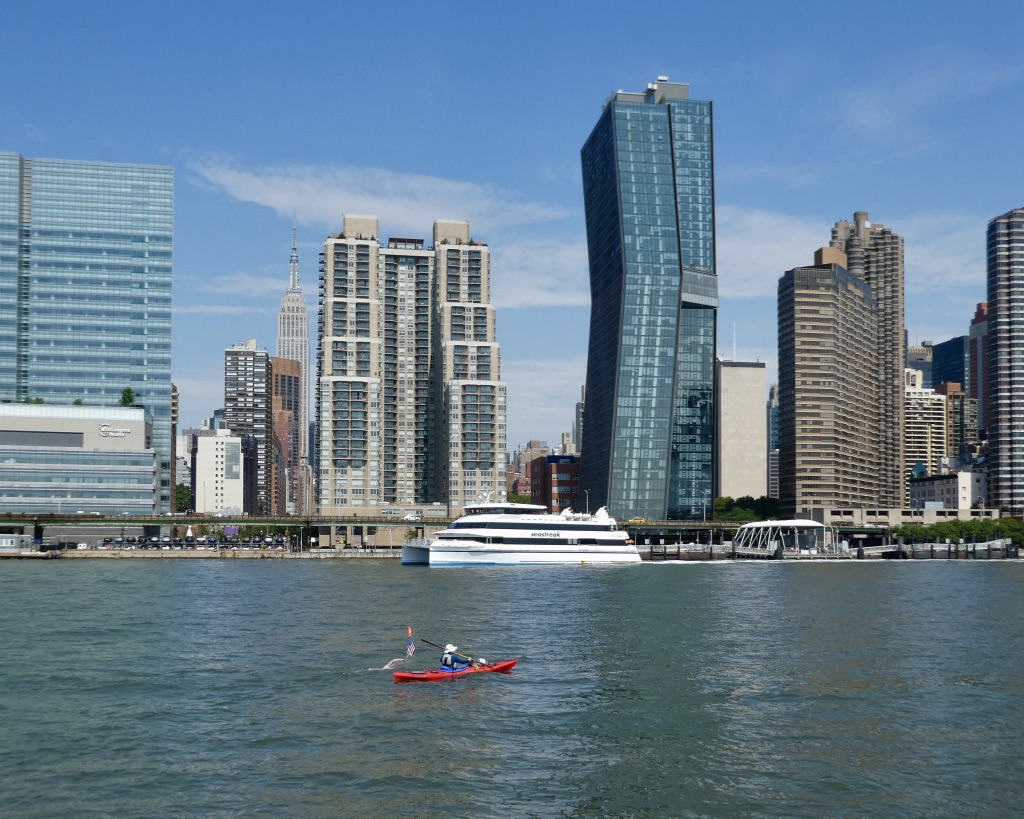 On Saturday, at 9:20 a.m. Bergman set a brisk and steady pace with kayaker Agnes Michalek at her side, and the support boat, Bella Vista, keeping up with her and monitoring each of the three rivers for hazards and safety risks. The race began at the southwestern tip of Manhattan, at Pier A, with the swimmers quickly traversing the last portion of the Hudson River before entering the East River. Each river is also unique - both the Hudson and the East River are heavily influenced by tidal flows - so timing to get through each section of the race is critical to avoid tidal changes which can make swimming almost impossible.