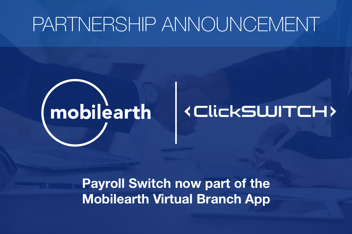 BURNABY, British Columbia , May 17, 2018 (Newswire.com) - Virtual branch app provider Mobilearth has partnered with digital switch provider ClickSWITCH to offer financial institutions with a new feature for the Mobilearth roving teller dashboard - the ability for employees to help customers move their automated payroll deposits in a seamless and paperless process that takes mere minutes to complete.