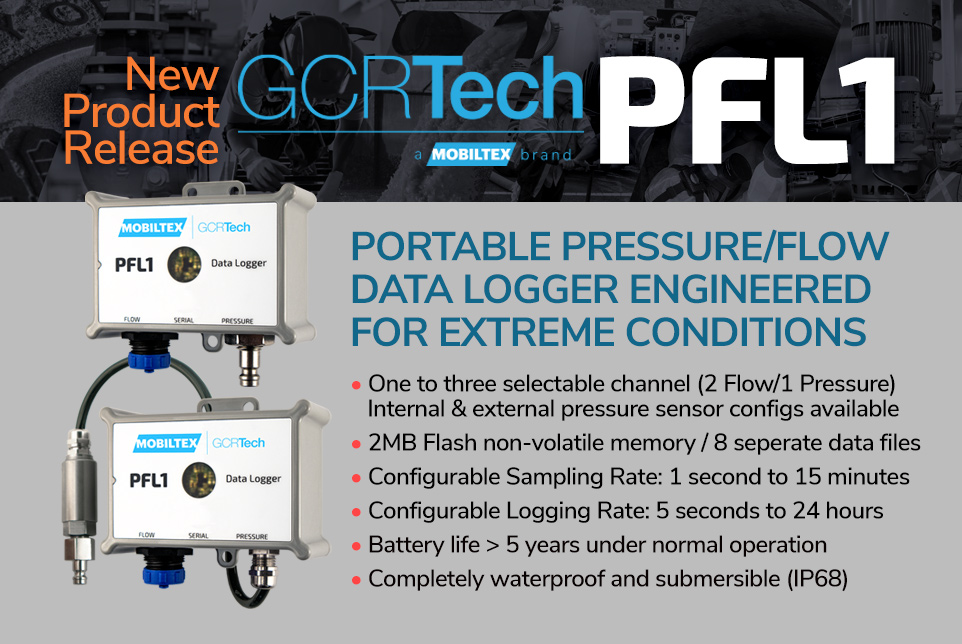 Visit www.mobiltex.com/pfl1 to learn more about the GCRTech PFL1 and the entire suite of Pressurized Pipeline Network Monitoring solutions from the MOBILTEX GCRTech Product Group.
