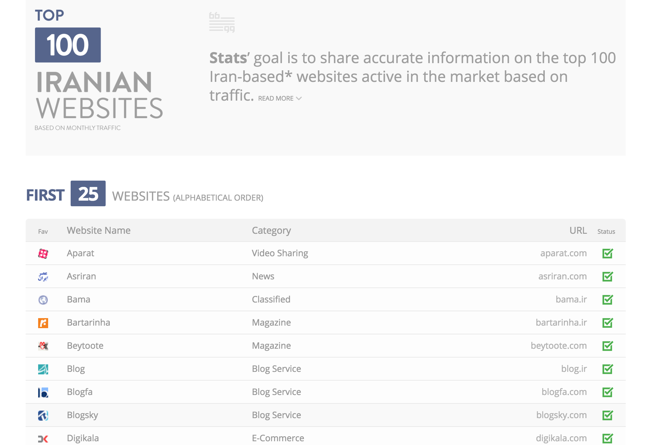 Anetwork launched a new product last week called Stats. Stats' goal is to share accurate information on the top 100 Iran-based* websites active in the market based on traffic.