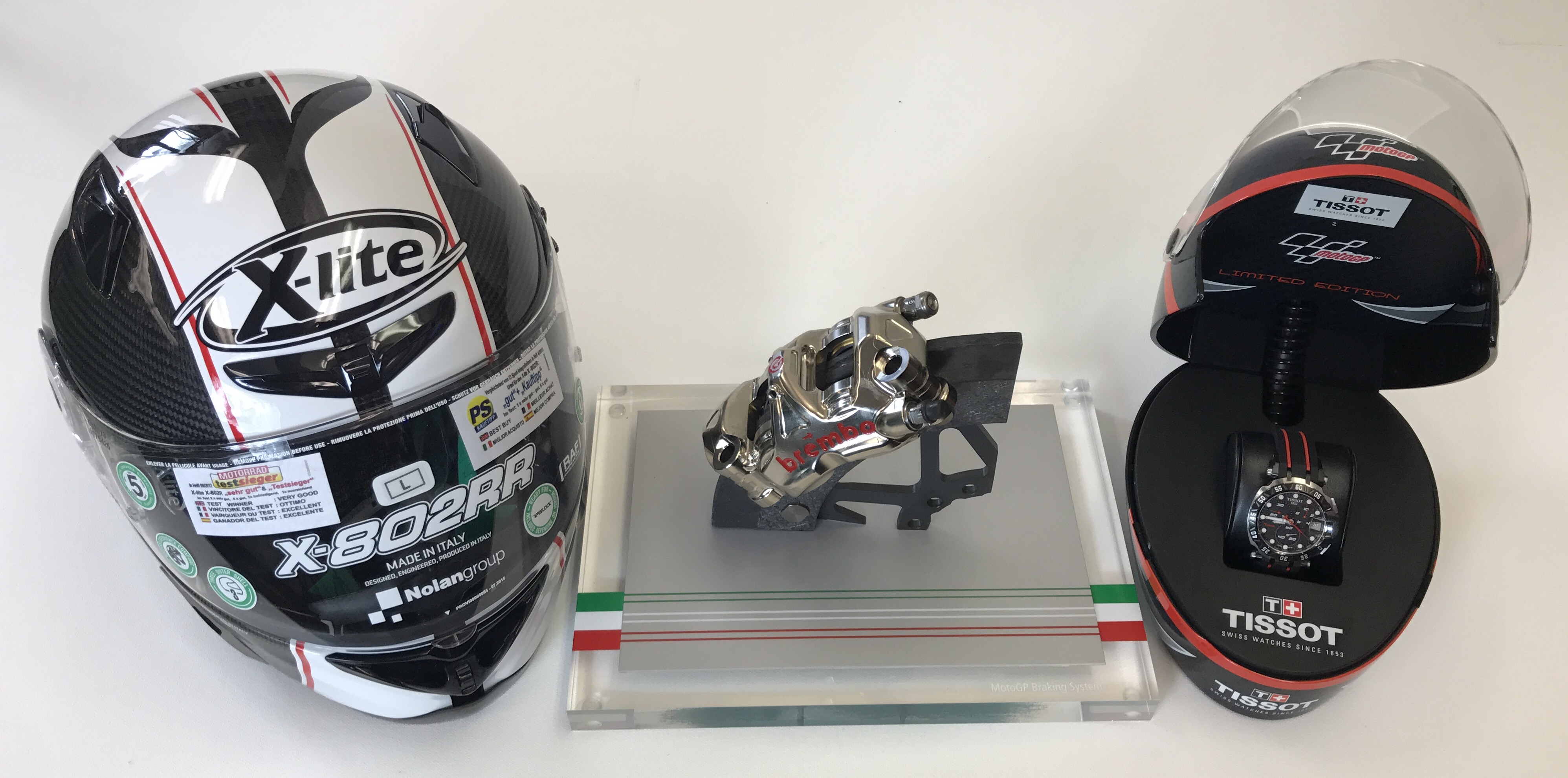 The three top placed Fans will each receive a magnificent Brembo Fan World Championship trophy, manufactured from an authentic MotoGP carbon fiber brake disc and MotoGP spec caliper. Each contestant will also receive a limited edition X-Lite helmet and collectible MotoGP series watch from Tissot. Other prizes include paddock passes to a race of their choice and a travel credit to assist with getting to the races.