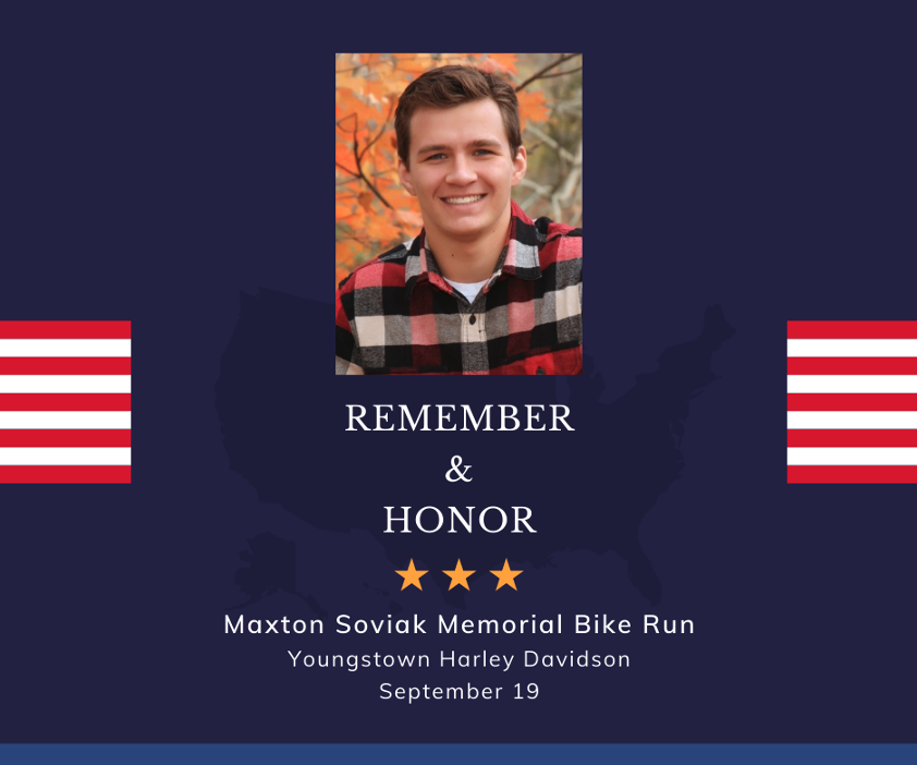 To learn more about Maxton Soviak's life, visit https://bit.ly/3956VBY. To learn more about Youngstown Harley-Davidson and the Maxton Soviak Memorial Bike run, visit https://bit.ly/2YZ7wU3.