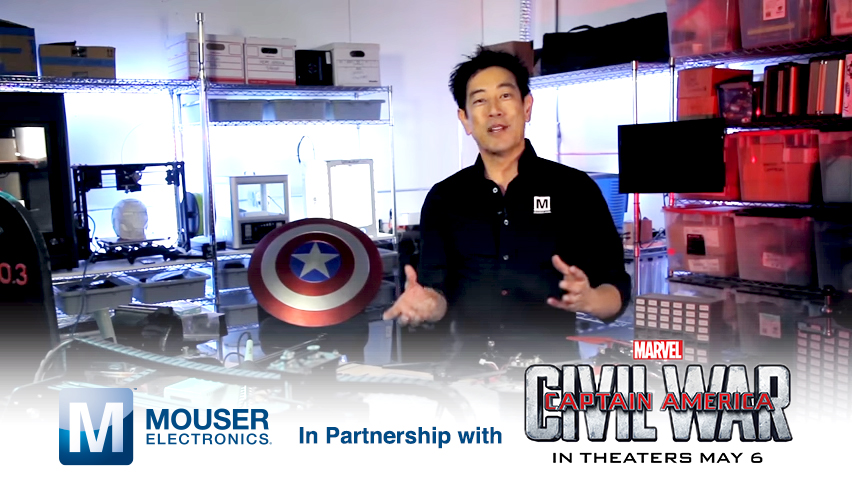 In the first project Mouser will team up with Marvel to build Super Hero technology straight from the movie Marvel’s Captain America: Civil War — including real-life working versions of Captain America’s shield and Iron Man’s gauntlet. Grant Imahara will team up with viral video celebrity Allen Pan in a series of videos to highlight the full build process — from concept to the final unveiling. This first project is sponsored by Molex and Analog Devices, who will supply new, advanced parts for the challenging build.