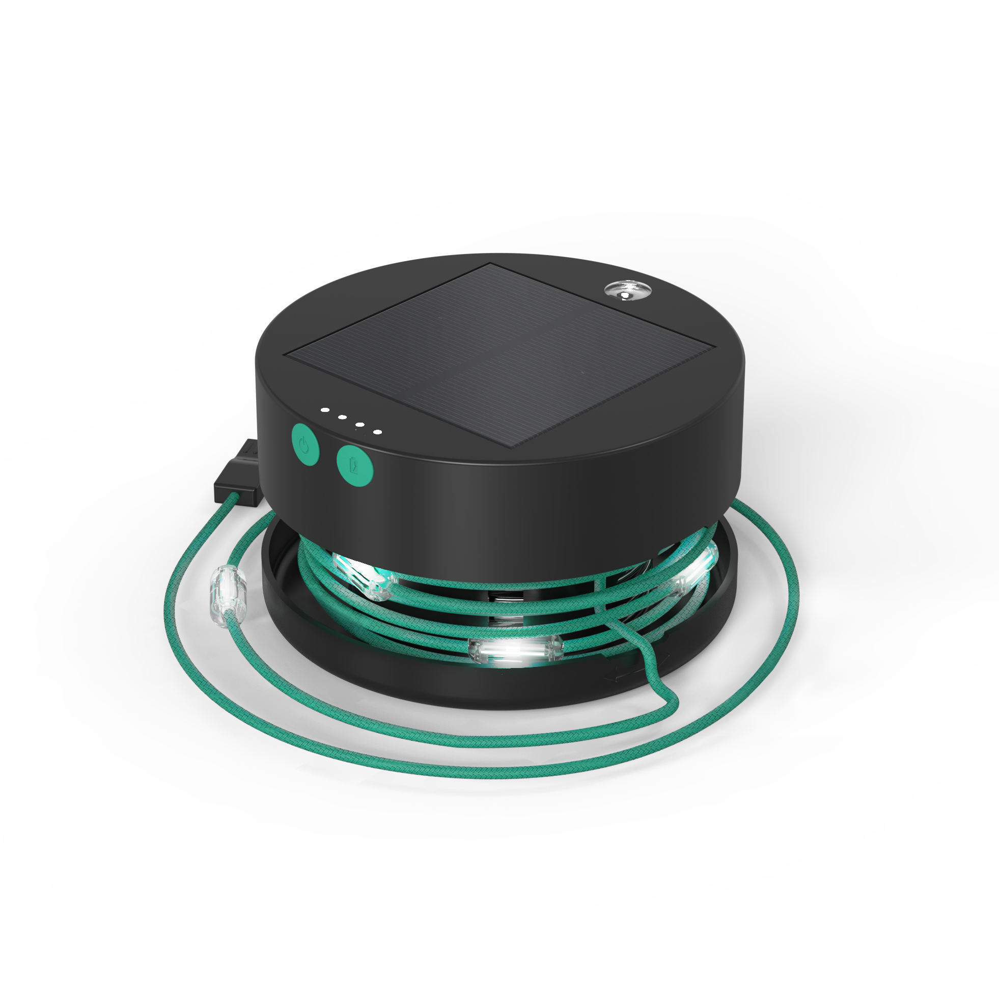 Luci Solar String Lights are self-contained in a case that keeps them safely and neatly wound. The body of the case is durable and water-resistant with an IPX4 rating (limits damage from exposure to water and dust). The String Lights case can be closed with the entire string rolled inside for easy storage or when in use with the string fully or partially extended, customizing the length of the light as needed. To offer quick navigation lighting, there is a single LED focus/indicator light on the base of the container which illuminates before the entire string of lights turn on when powered.