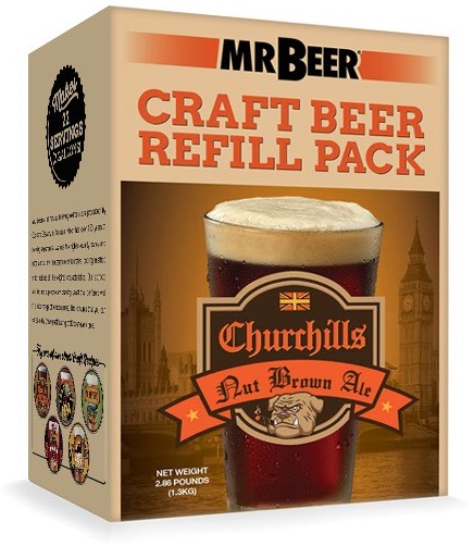 The craft beer kits can be purchased with either Bewitched Amber Ale, American Lager, Northwest Pale Ale, Diablo IPA, Long Play IPA, or Churchills Nut Brown Ale beers inside. The kits range in price from $44.95 to $64.95 depending upon the beer and whether they are complete or starter versions. The difference between the complete and starter versions is that the complete kit comes with carbonation drops, bottles, caps and labels for bottling, while the starter kit comes with only the essentials for brewing.