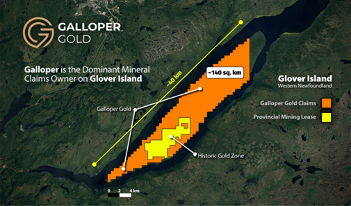 Galloper is focused on mineral exploration in the Central Newfoundland Gold Belt with its flagship Glover Island Property, 24 km southeast of Corner Brook, and its Mint Pond prospect in the Gander area. Galloper completed the first diamond drilling program at Glover Island since 2012 in 2024, completing six holes and is preparing for a robust drill program in 2025.