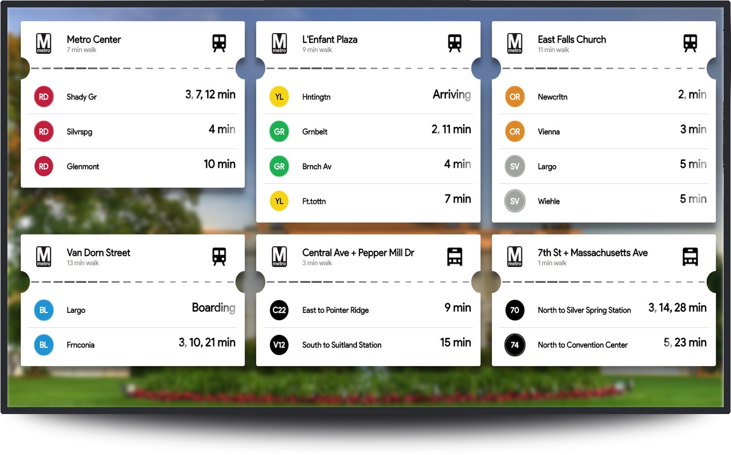 To add public transit on your digital signs or to see a demo of it in action, contact Mvix at 703.382.1739 or [email protected].