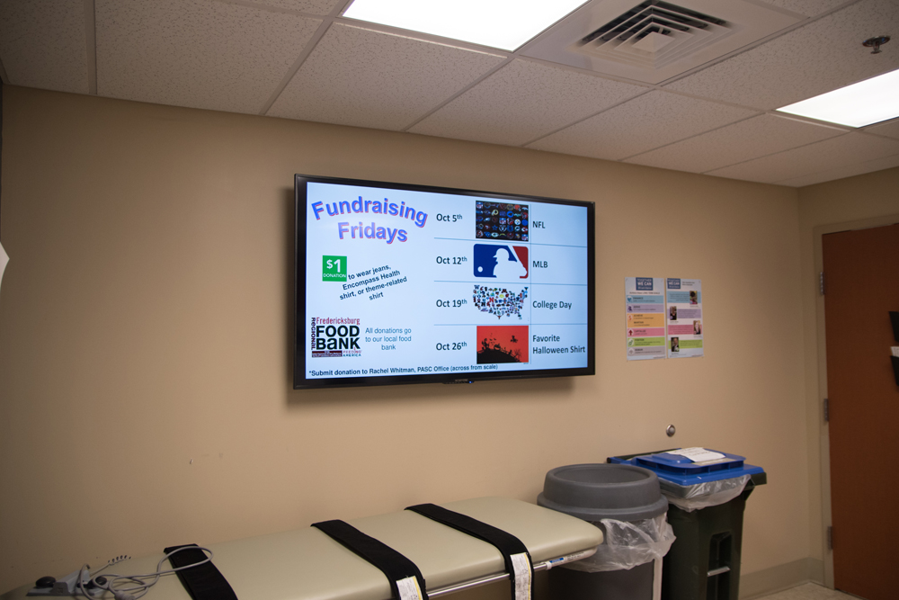 The CEO of Encompass Health Fredericksburg was a champion of using digital signage as an answer to these challenges.