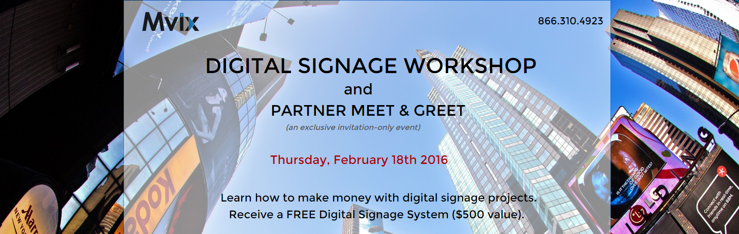 “Digital signage can seem intimidating to new market entrants,” said Mike Kilian, a Digital Signage Certified Expert (DSCE), and Mvix’s Director of Business Development. “The goal of this workshop is to demystify digital signage. We want partners to understand the local market for this technology, and how to profit from it.”