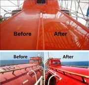 Nano Clear is the only marine coating in the global market place to enhance, restore and extend the service life of newly painted or highly oxidized painted surfaces by 10 years. Nano-Clear® penetrates deep into the smallest pores of paint, enhancing the underlying color, dramatically improving gloss, scratch resistance, corrosion resistance and extending UV resistance, while reducing surface cleaning by 50%. Nano-Clear® eliminates the need to re-paint, color match or polish gel-coatings, thereby reducing material, labor and maintenance costs.