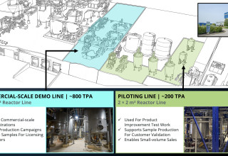 La ligne pilote de ~200 tpa est déjà opérationnelle pour produire des échantillons aux client, l'amélioration continue des procédés et des produits, ainsi que pour les ventes commerciales de petits volumes, avec des premiers accords commerciaux prévus pour la fin de 2026.