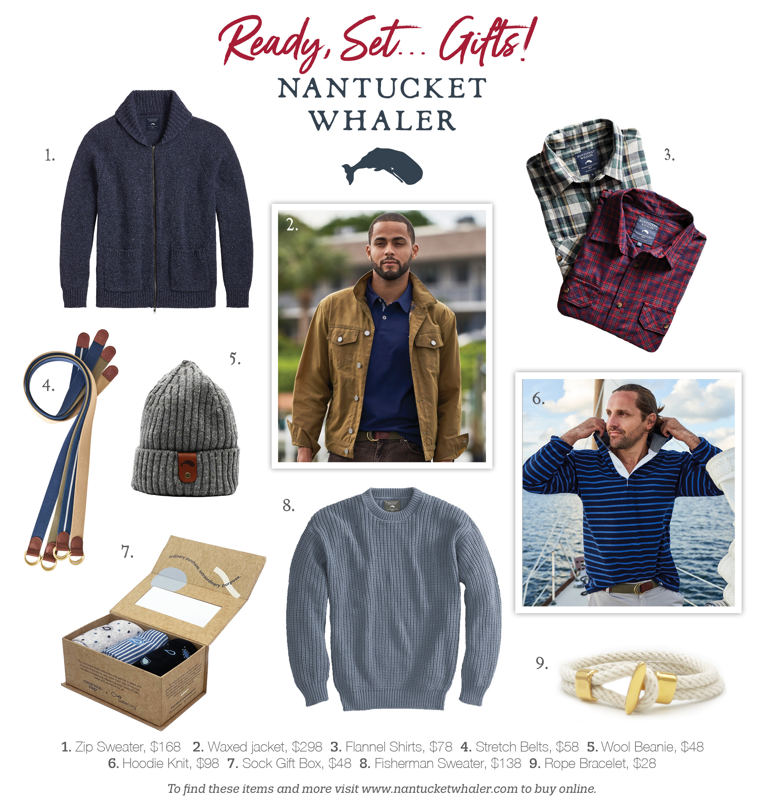 The Nantucket Whaler holiday gift guide features not only apparel but also curated accessories to assist customers with purchasing gifts for that special someone. The brand's authentic style exemplifies grit, strength, and endurance in well-crafted clothes for modern customers who embody the same core values.