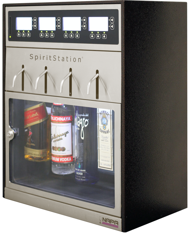 · The SpiritStation provides dispensing at three customizable pour sizes per bottle such as a taste, shot, and double.