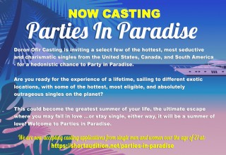 Doron Ofir Casting is inviting a select few of the hottest, most seductive and charismatic singles from the United States, Canada, and South America - for a hedonistic chance to Party in Paradise on reality TV's newest dating obsession. Slated to air on one of the biggest global entertainment platforms.