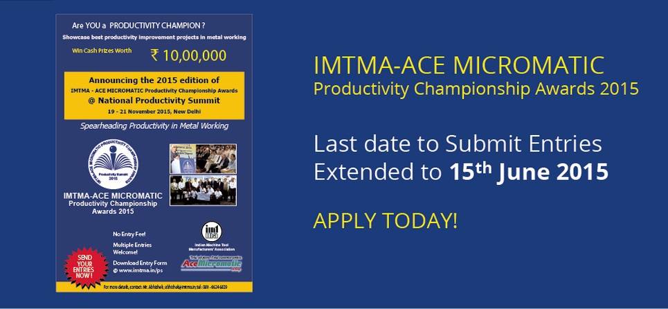 Indian Machine Tool Manufacturers' Association is the coming together of Machine Tool Manufacturers of repute in India. Under its aegis it is holding the “National Productivity Summit 2015”, at Gurgaon’s Hotel Crowne Plaza on 20th and 21st November 2015.