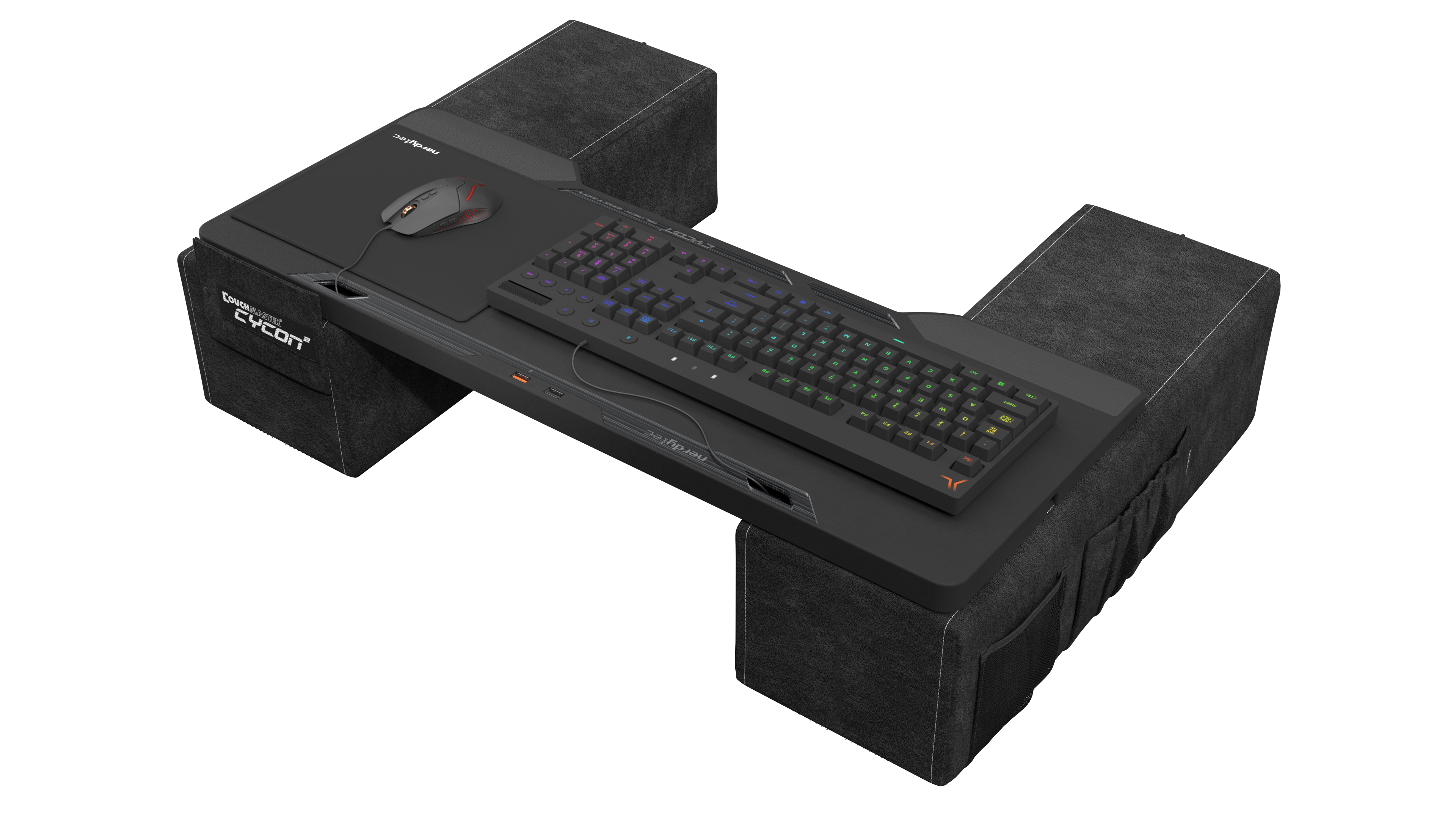 nerdytec’s Couchmaster® CYCON² is the latest version of the CYCON, the video game market’s most well-rounded lapdesk. This new model stays true to the core mission of the original: to provide maximum comfort and performance for couch-based gamers, while allowing them to fully immerse themselves into their gaming experience.