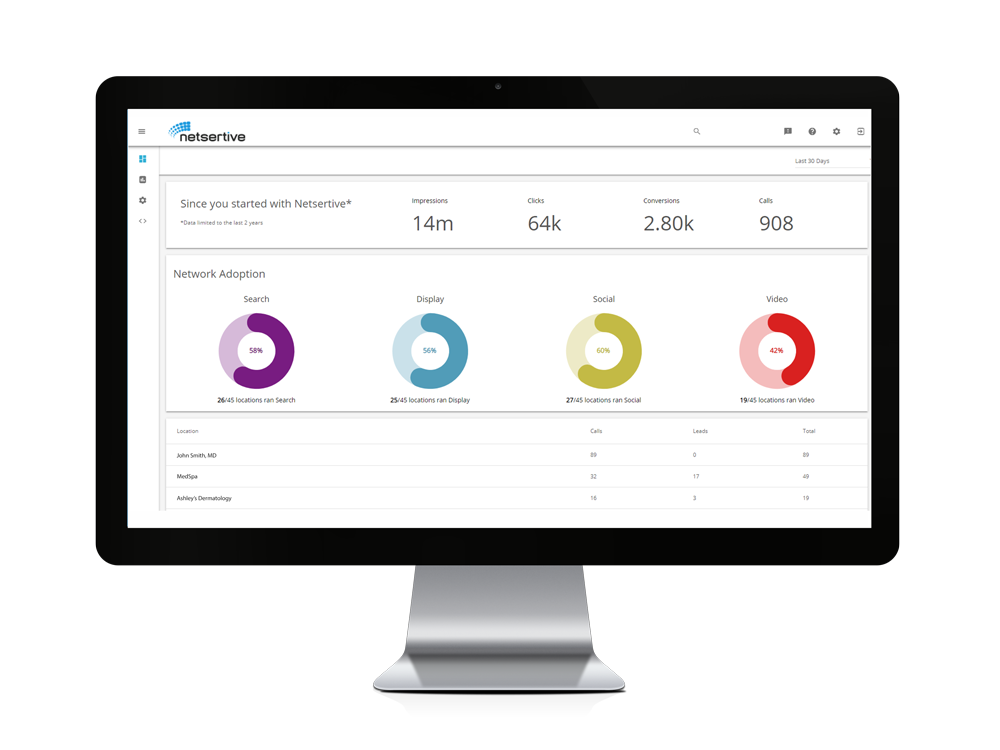 Netsertive’s Analytics Dashboard includes features like multi-location performance views, heat mapping reflecting performance by location, location activation data for brands, as well as instant period-over-period comparisons. Fully integrated with its campaign execution platform, it synchronizes tracked and recorded phone calls, (HIPAA-compliant for healthcare uses), leads from its SmartPages™ landing page solution and one-click creation of campaign trending and performance reports. This is the latest step in Netsertive’s product evolution to help brand marketers make better, faster decisions that impact all locations at once and focus on ROI.