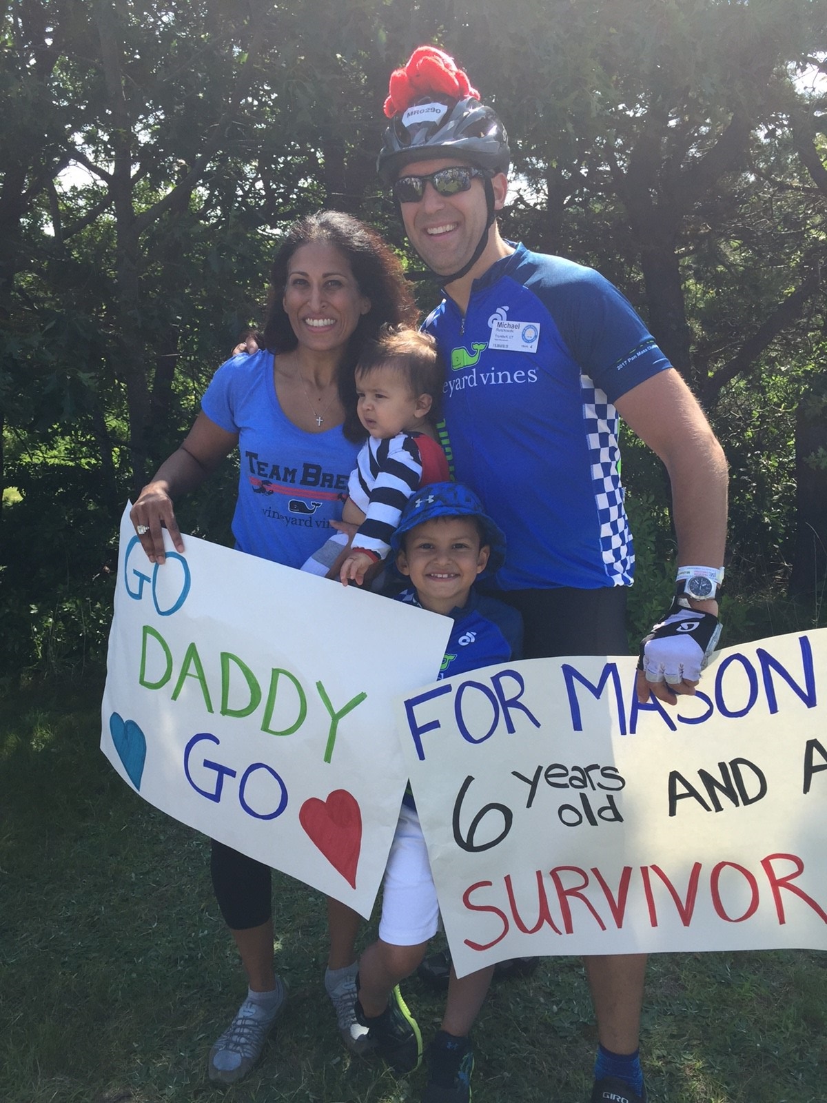 Michael and Vimala’s son, Mason, now 6 years old, is a Stage IV Neuroblastoma Survivor. Neuroblastoma is an aggressive form of pediatric cancer. Diagnosed at the age of 18 months, Mason is alive and well in part because of the excellent care he received from Dana Farber Cancer Institute in conjunction with Boston Children’s Hospital. The team Mr. Ruszkowski rides with, Team Brent (in honor of Brent McCreesh, a now 13-year survivor of Stage IV Neuroblastoma), has raised over $268,000, this year alone. This money will go directly to studies and trials to continue to attack the disease from multiple angles including immunotherapy (specifically work on the GVAX vaccine), Anti-GD2 antibodies, targeted radiotherapy, and more.