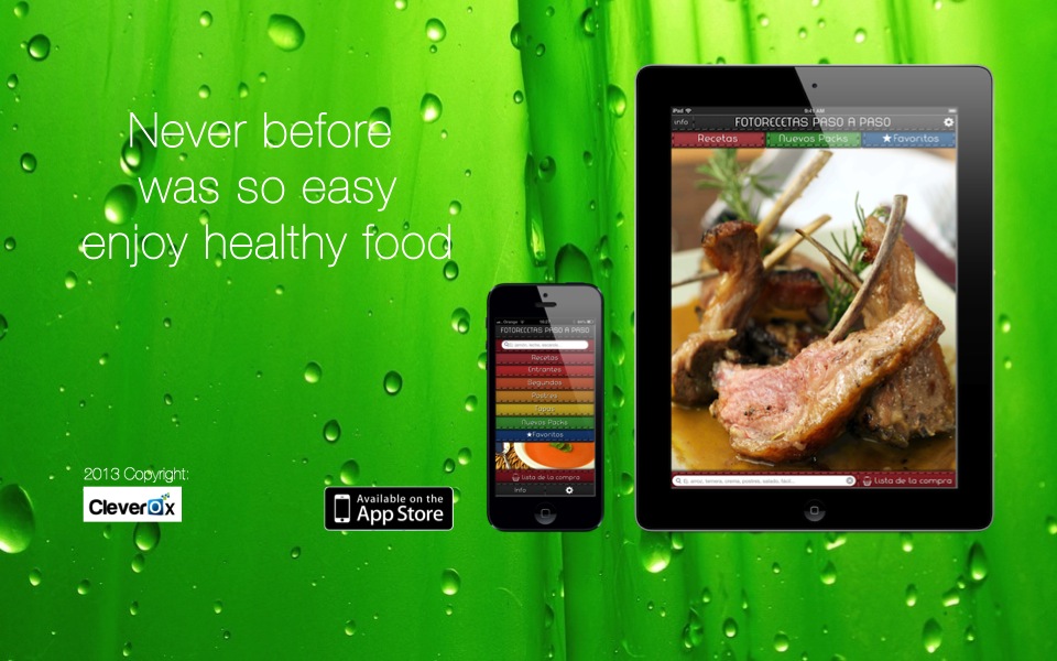 From Cleverox say: "Like in the preparation of the best dishes, Cleverox put passion and work in the development of Photo Recipes Step-by Step, developers took care of every detail, from the navigation and visual environment of the application itself to every single step of each recipe, as well as the meticulous selection of the dishes to which we imposed only three criteria: that they should be healthy, simple and at the same time that they had the originality of Mediterranean food."