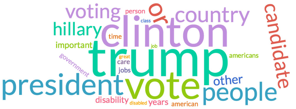 Tags: Clinton, Cooper, Disability, discriminiation, Eastwood, economics, election, healthcare, homeland, President, Trump, voting