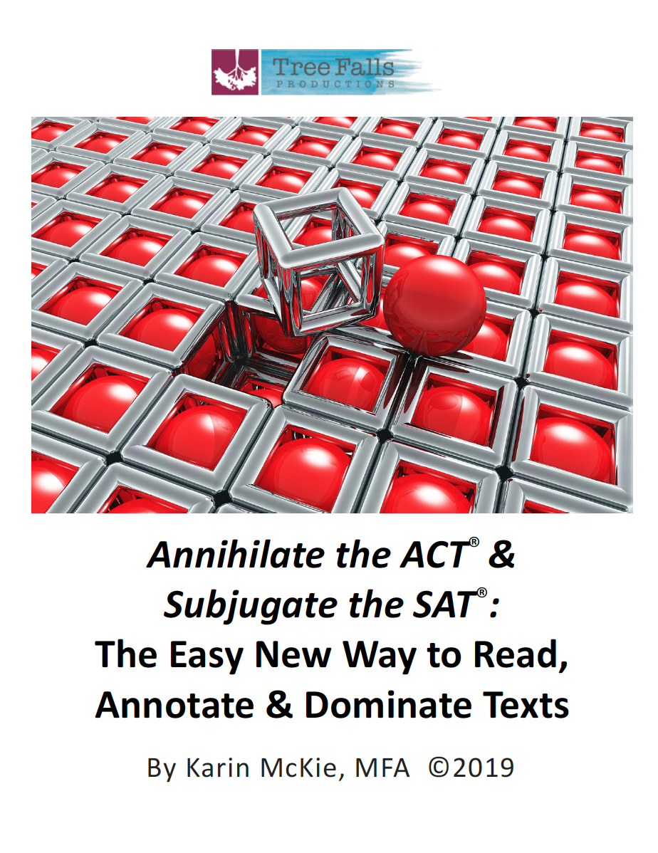 CHICAGO, February 26, 2020 (Newswire.com) - Tree Falls Productions announces the new test prep book Annihilate the ACT & Subjugate the SAT: The Easy New Way to Read, Annotate & Dominate Texts. The book shares a clear, concise method for reading comprehension on standardized tests like the SAT and ACT, and with any high school, college, and work texts. The Repetitions and Opposites Reading technique, RAOR, is a simple system to track and summarize the thesis, especially if the reading is dull, dense, or archaic. Using simple recaps and annotations, RAOR provides easy hand-holds to power through passages and retain key points on the ACT, SAT, and in any reading.