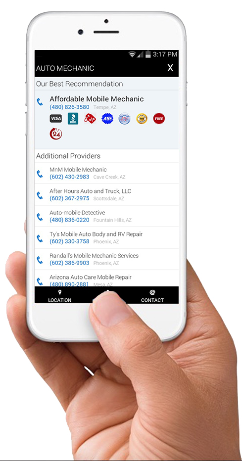 Not a roadside breakdown? Go Mechanic includes a diverse directory of several mobile service options; auto and RV mechanics, oil, detailing, tire and glass. GPS based, the app can instantly find the nearest mobile service provider simply by referencing your current location. Then with a one-touch-call, you can talk live with a provider of your choice to schedule your service at a location of your choosing. Best of all, there's no need to link a credit card to the app to request services. It's that Simple.