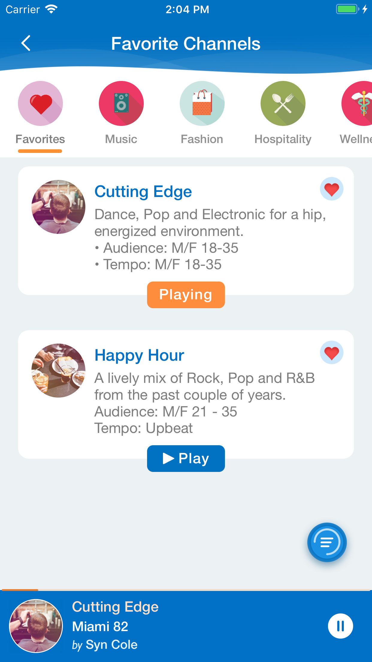 Making a custom channel is easy. There are a variety of custom options to get the exact music experience you're looking for. NEXTUNE will even produce audio messages and insert them into any of your channels to promote special events. With this App it's simple to get a custom radio channel licensed for your business.