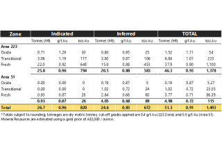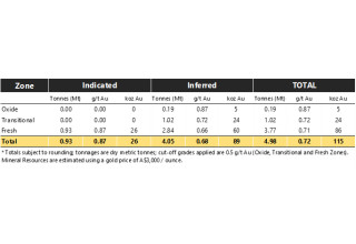 The resource is reported above a 0.5 g/t gold grade and within 150 m of the surface (1025 mRL).
