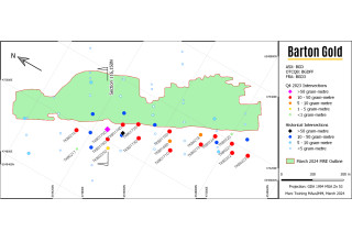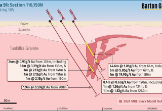 During late 2023 Barton completed another 1,700m RC and 1,748.5m DD drilling, intersecting broad mineralisation with results including 44.6m @ 1.81 g/t Au from 64m and 22m @ 1.33 g/t Au from 158m.3