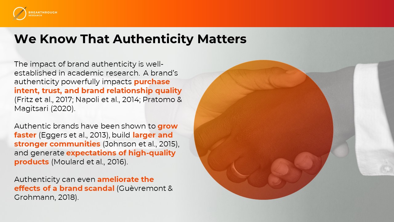 "The importance of brand authenticity is well-established in academic research," explains Dan Braker, president of Breakthrough Research. "Being authentic drives positive first impressions and long-lasting connections. People crave real connection, and the sense that what we are seeing is what we are getting."