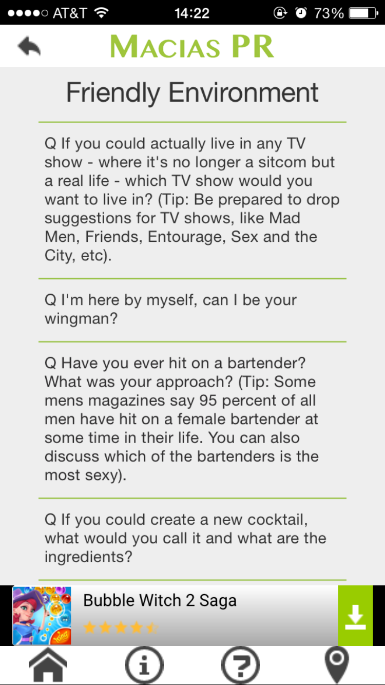 The free mobile app is essentially a cheat sheet that provides thought-provoking and fun questions for any situation or location.