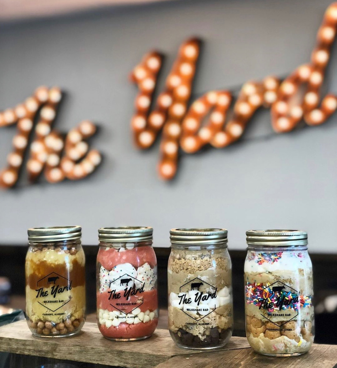 It is an original concept that the couple came up with one day and immediately knew it was special. Chelsea says, "I love combining the flavors and toppings to make new creations. I wanted our customers to be able to come up with their own milkshakes and sundaes easily. The way our menu is at The Yard, everyone will be able to build a new shake or sundae every time they come in." Everyone also gets a souvenir with every specialty milkshake or sundae, because the branded mason jars are for customers to take home.