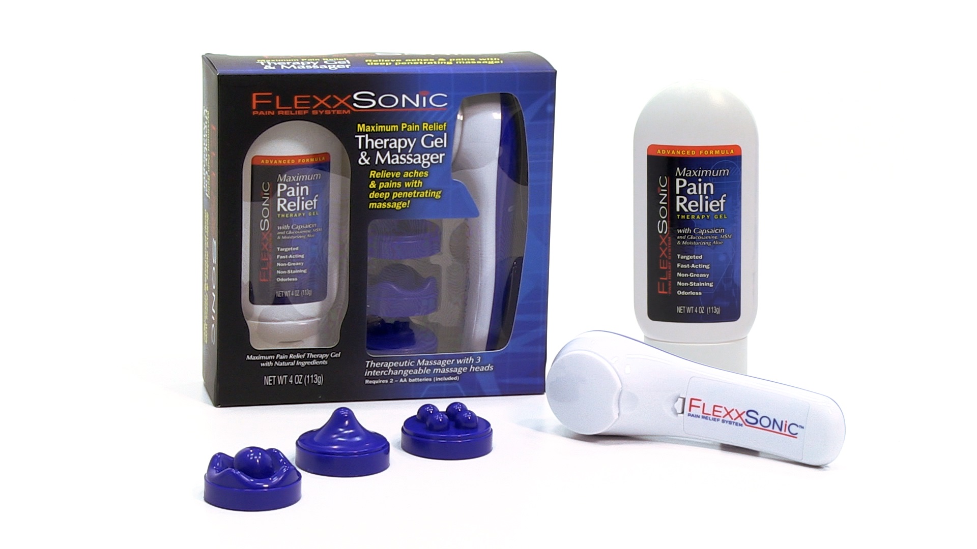 FlexxSonic™ Maximum Pain Relief Therapy - The most advanced pain management relief through conveniently packaging the FlexxSonic™ Pain Relief Gel with FDA-Cleared Therapeutic Sonic Massage device