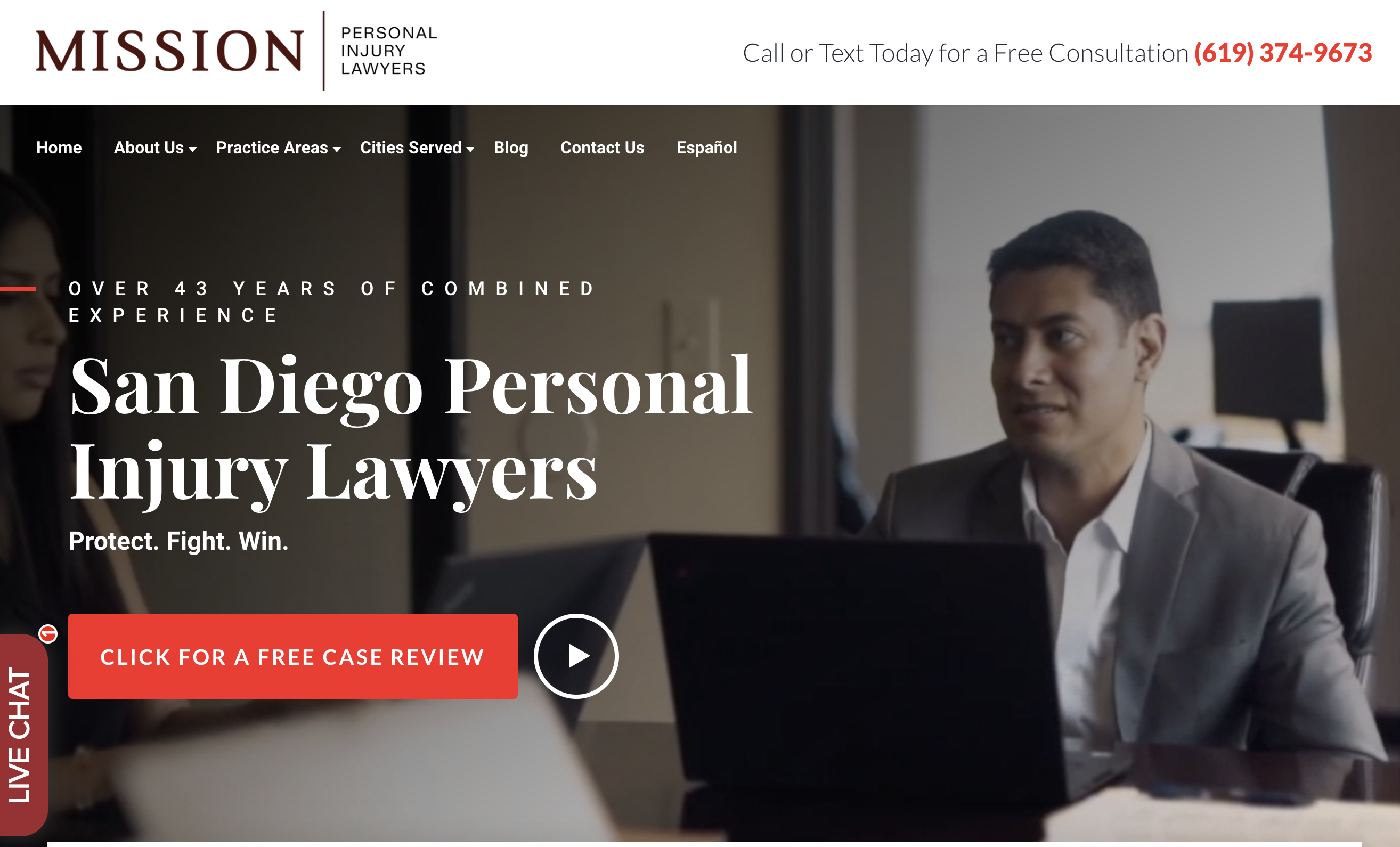 Mission Personal Injury Lawyers, P.C.'s new name reflects its age-old commitment to its lone practice area: personal injury. Its new website does the same by empowering injury victims to quickly and easily connect with the firm's San Diego personal injury lawyers. The state-of-the-art website features important and helpful legal information, notes about its attorneys' experience and professional honors, and details about the firm's past settlement and judgment awards.
