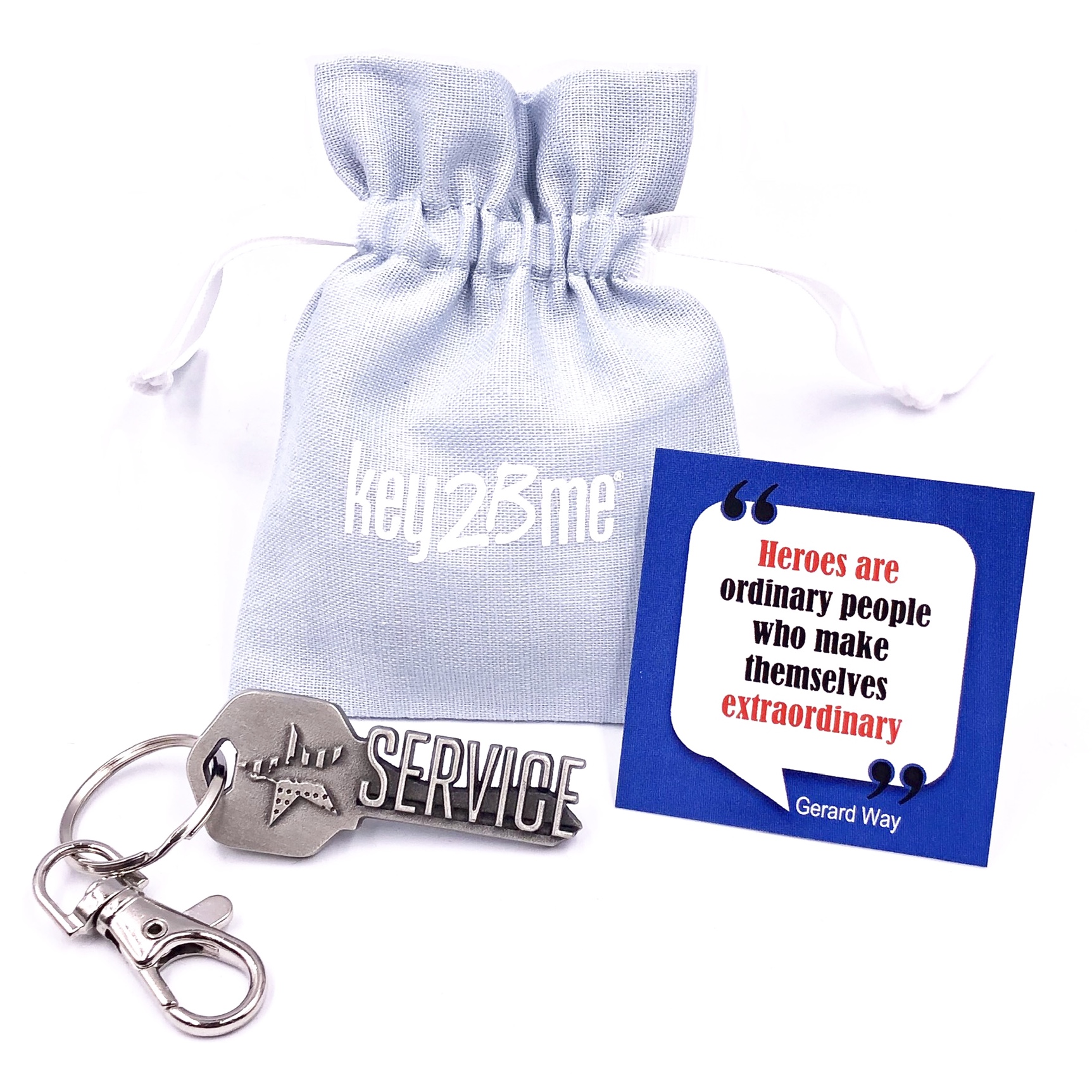 Those who serve in the armed forces and as first responders often don’t work from a desk and can’t carry much with them but all key2Bme designs come with a clip-on key ring so they can easily clip it on a keychain, lanyard or duffle bag to remind the recipient how much their efforts are appreciated.