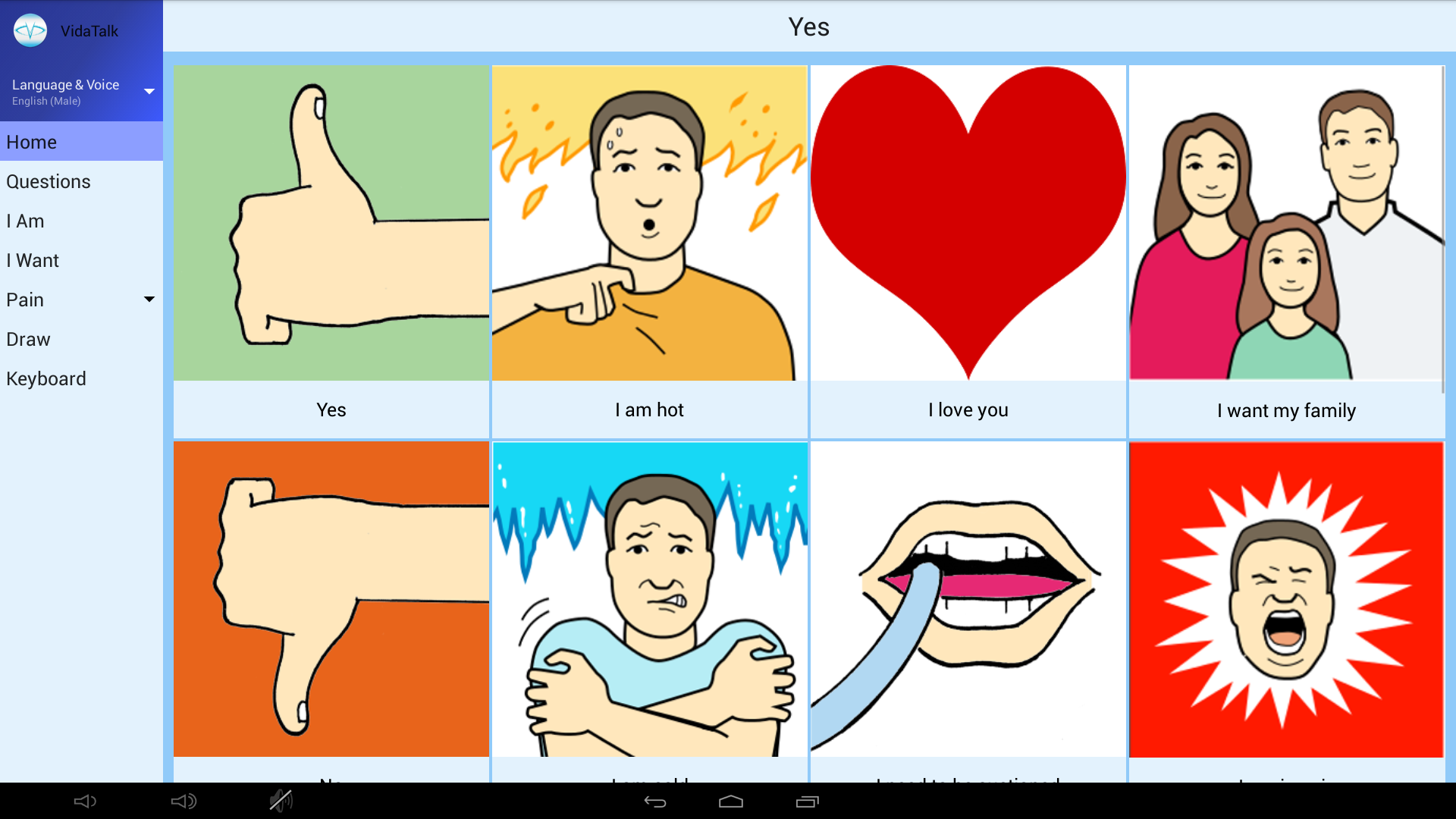 At the most critical time in their life, when patients are critically-ill and unable to speak, VidaTalk provides patients a lifeline to loved ones and family members. Being able to communicate your needs in one of the most vulnerable situations is extremely vital to your sense of self-preservation and being able to get your needs met. Further, the VidaTalk is available in over 10 languages in bilingual format, extending this lifeline equitably to all patients in need.
