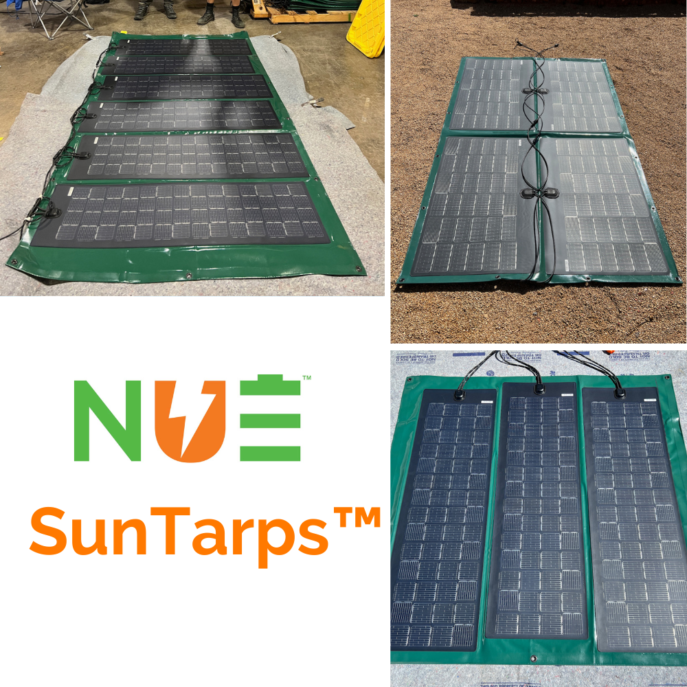 TEMPE, Ariz., July 20, 2022 (Newswire.com) - New Use Energy Solutions (NUE) announced today the launch of the SunTarp™ line of portable solar PV panels. Assembled at NUE's headquarters in Tempe, these ultra-durable solar PV panels contain no metal frames or glass, making them 30% lighter than traditional monocrystalline solar panels and easy to fold, carry and stow.