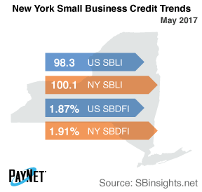 Coming in at 100.1, New York's PayNet Small Business Lending Index (SBLI) exceeded the national SBLI level (98.3) despite declining by 0.2% from last month's state level. Small business borrowers are being cautious and holding off on new investment.