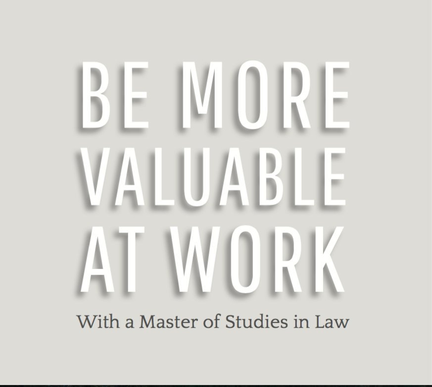 The Master of Studies in Law is a fully online, part-time degree and certificate program for working professionals who need to learn how to navigate the law, not practice it. Students learn to manage risk and add value to their workplace through two tracks: Health Law & Policy or Human Resources.
