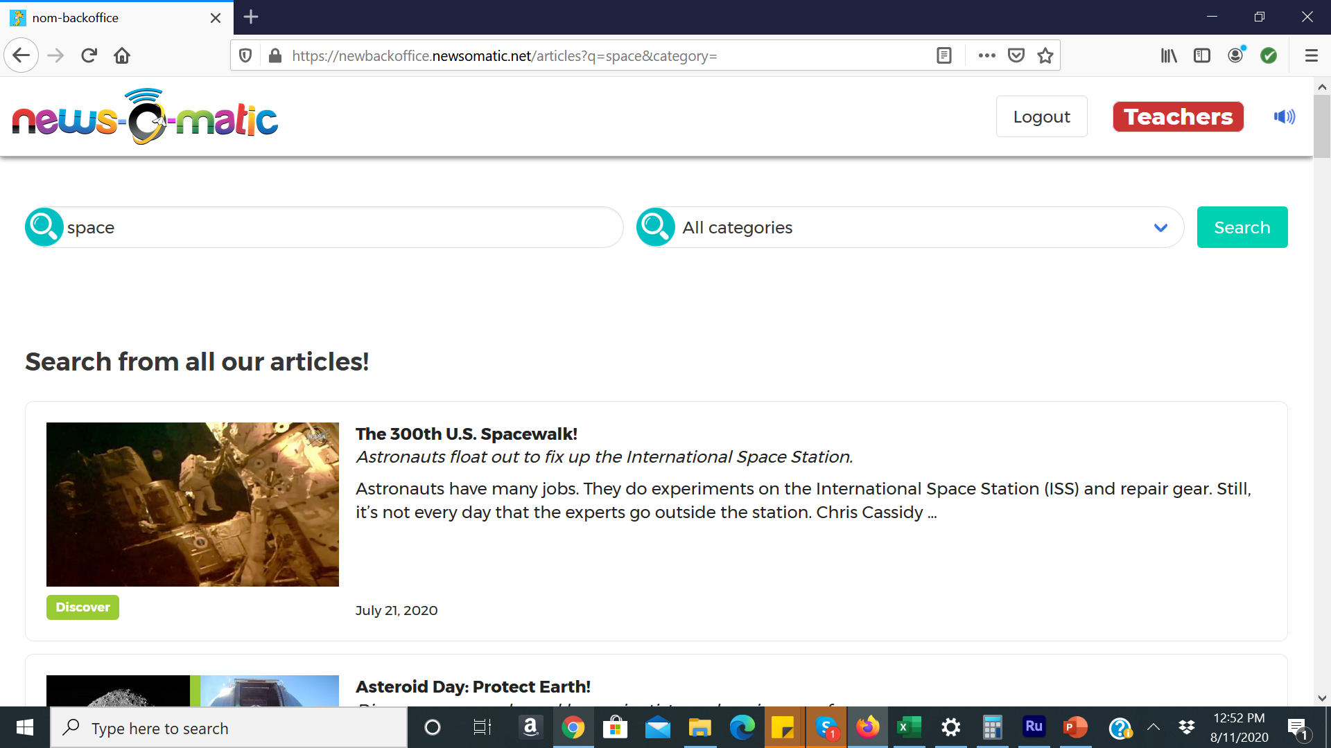 News-O-Matic’s archives contain more than 10,000 unique nonfiction stories, available in multiple languages (English, Spanish, French, and Arabic) and at three different reading levels. The topics are designed to appeal to young readers of all interests and to be used across the ELA, social studies, science, and SEL curricula. The archives are accessible on the web and mobile versions of News-O-Matic through a search bar, which enables users to explore stories by category or keyword. Because News-O-Matic articles are written specifically for children, all search results are safe and kid-friendly.
