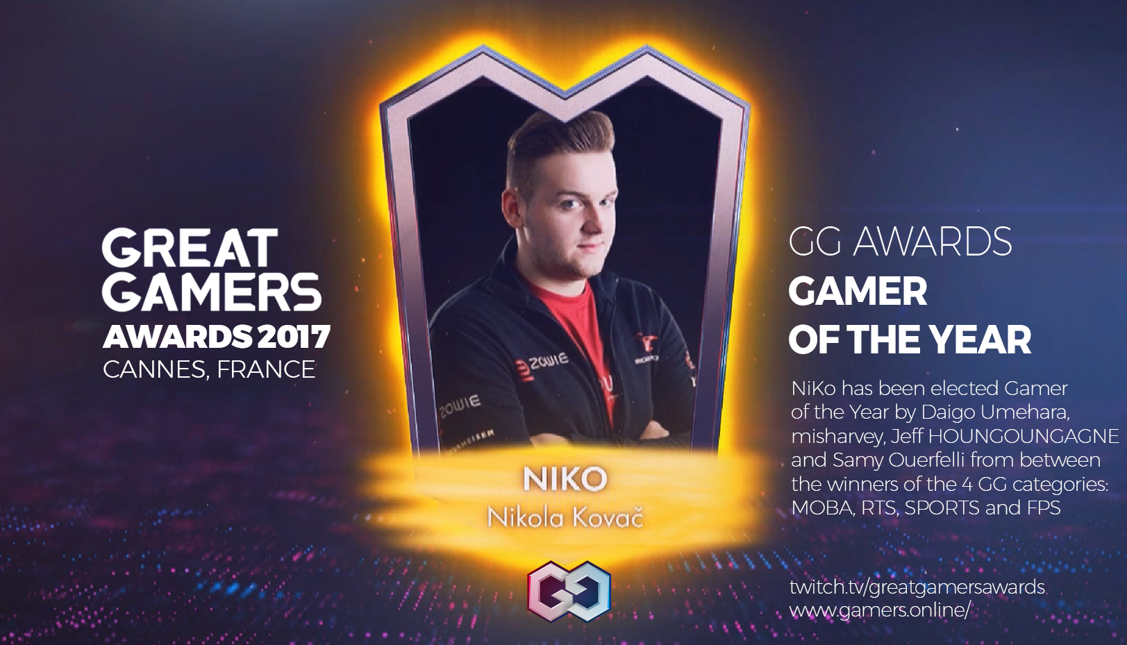 NiKo is elected the Gamer of the Year for all games combined, after having also won both public and jury in the First-Person Shooter category, curated by missharvey.