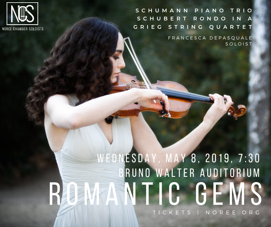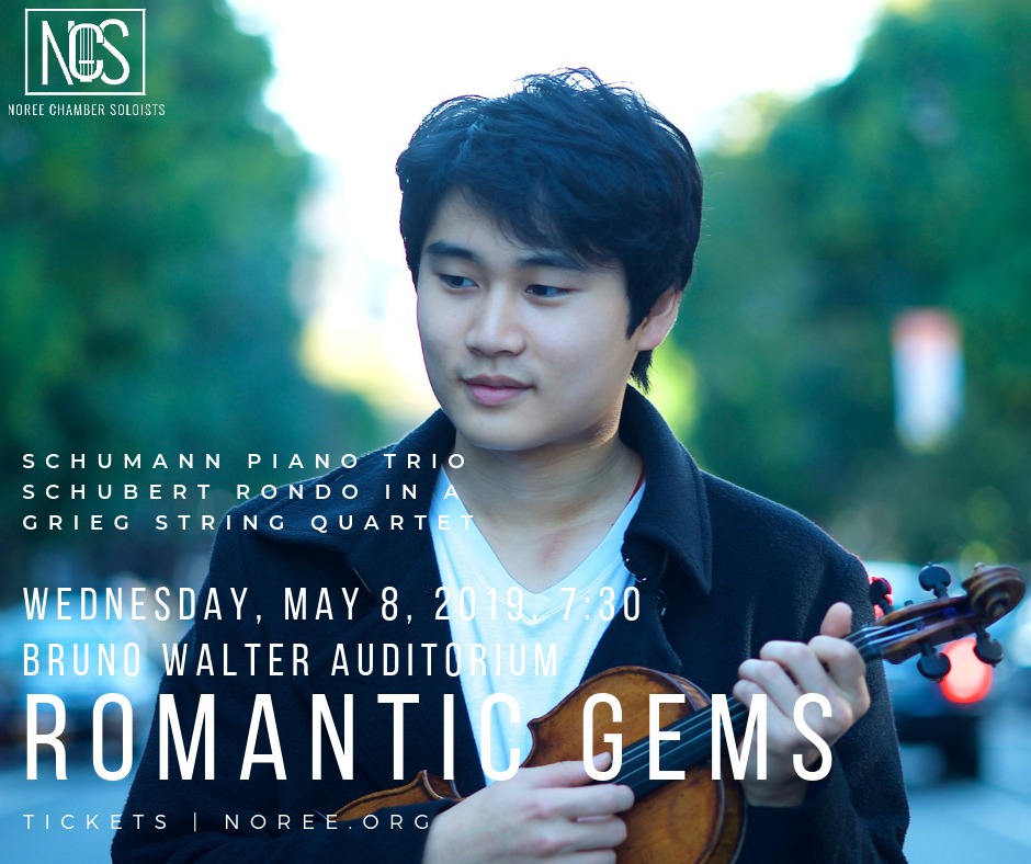 NEW YORK, April 23, 2019 (Newswire.com) - Noree Chamber Soloists brings limelight to some of the most captivating yet lesser-performed works of the Romantic period: Schubert’s robust Rondo for Violin and Strings in A Major, Schumann’s Piano Trio No. 2 in F Major, and Grieg’s impassioned String Quartet in G Minor. Featuring NCS violinist Francesca dePasquale, Rondo for Violin and Strings in A Major is one of the few works Schubert wrote for solo instrument and ensemble. Its bold contrast between lyrical and virtuoso solo passages will dazzle the audience. Schumann’s jubilant second Piano Trio, composed during the year of the composer’s exceptional creativity, is likely to have been inspired by a piano trio of his wife Clara. Grieg’s brilliance as a melodist can be heard in his extensive and tantalizing first String Quartet. Come join the musicians of the Noree Chamber Soloists, including Inmo Yang, the first-prize winner of the 2015 Paganini Competition in their season finale concert.