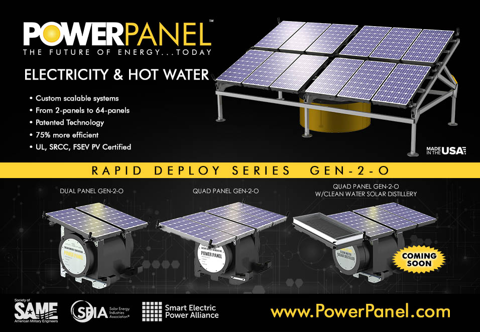 DETROIT, August 28, 2017 (Newswire.com) - Solar Power International (SPI) will showcase a Dual-Panel Gen-2-O model on the floor at the Power Panel booth #6521 from Sept. 10 to 13, right across from the Smart Energy Microgrid Demo. Attendees can see the compact footprint for themselves and feel the resilience of the incredibly durable components. The sturdy dual-paneled system is engineered for maximum portability, ease of installation, and simplicity of use. It excels in diverse applications, including off-grid living, industrial sites, and military operations.