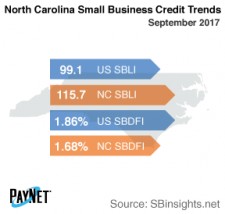 Coming in at 115.7, North Carolina's PayNet Small Business Lending Index (SBLI) increased 1.4% from last month's state level and was 16.8% greater than the national SBLI level of 99.1 this month. We can cautiously anticipate improving financial conditions in North Carolina based on recent small business investment.
